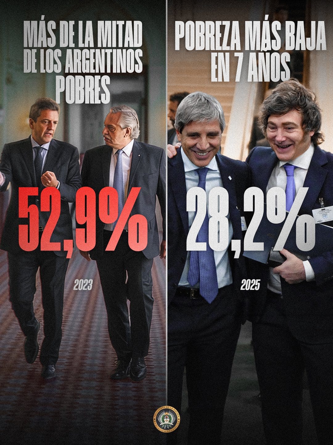 Dato social: El INDEC confirmó una baja de la pobreza al 28,2% (13 millones de personas). Y la Casa Rosada celebró el anuncio con la difusión de la siguiente imagen.